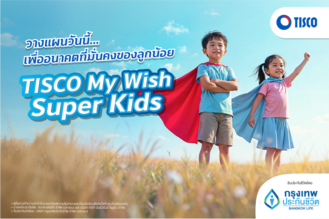 “ธนาคารทิสโก้ (มหาชน) จึงร่วมกับ บริษัท กรุงเทพประกันชีวิต จำกัด (มหาชน) นำเสนอผลิตภัณฑ์ ‘ประกันชีวิต สะสมทรัพย์ TISCO My Wish Super Kids’ ซึ่งเป็นมากกว่าแบบประกันสะสมทรัพย์ทั่วไป แต่เป็นเครื่องมือวางแผนการเงินให้ลูกแบบรอบด้านในกรมธรรม์เดียว ทั้งการออมที่เติบโตตามเป้าหมาย การคุ้มครองชีวิตและอุบัติเหตุ คุ้มครองโรคร้ายแรงในเด็ก และความอุ่นใจหากเกิดเหตุไม่คาดคิด ลูกจะยังมีเงินทุนเดินหน้าตามฝันต่อไปได้ เราเชื่อว่าการเริ่มต้นวางแผนเร็ว คือการให้ของขวัญที่มีค่าที่สุดกับลูก และด้วยแบบประกันนี้ พ่อแม่จะมั่นใจได้ว่า แม้การดำเนินชีวิตจะมีความไม่แน่นอน เส้นทางสู่อนาคตของลูกจะยังคงมั่นคง” นางกุสุมา กล่าว