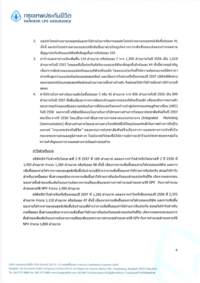 4. คำอธิบายและวิเคราะห์ของฝ่ายจัดการ ไตรมาสที่ 2 สิ้นสุดวันที่ 30 มิ.ย. 2557 (MD&A)