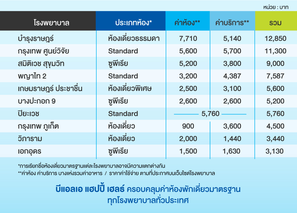 จะดีหรือไม่...ถ้าเรามีความคุ้มครองด้านสุขภาพ ที่ไม่เพียงแต่ให้ความคุ้มครองในการรักษาพยาบาลที่สูงเพียงพอ แต่ยังครอบคลุมถึงค่าห้องเดี่ยวมาตรฐานของทุกโรงพยาบาล ไม่ว่าเราจะเข้ารับการรักษาในโรงพยาบาลอะไรเราก็จะได้รับความคุ้มครองสำหรับค่าห้องพักเดี่ยวในโรงพยาบาลนั้น ๆ โดยไม่มีวงเงินค่าห้องพักโรงพยาบาลต่อวันเป็นจำนวนเงินคงที่ตายตัวไปตลอดความคุ้มครองของเรา และที่สำคัญมีค่าเบี้ยประกันที่ไม่สูงจนเกินไป