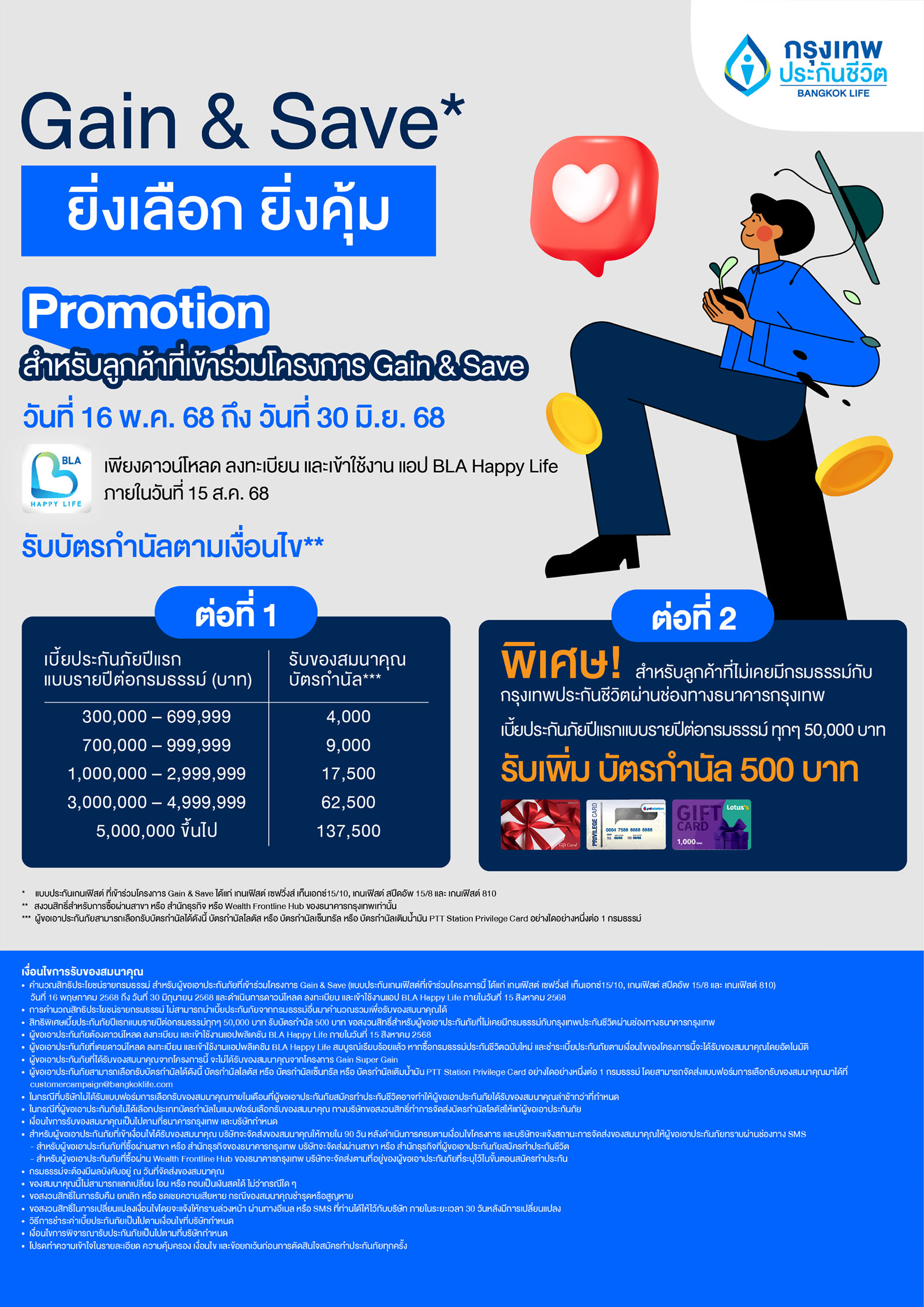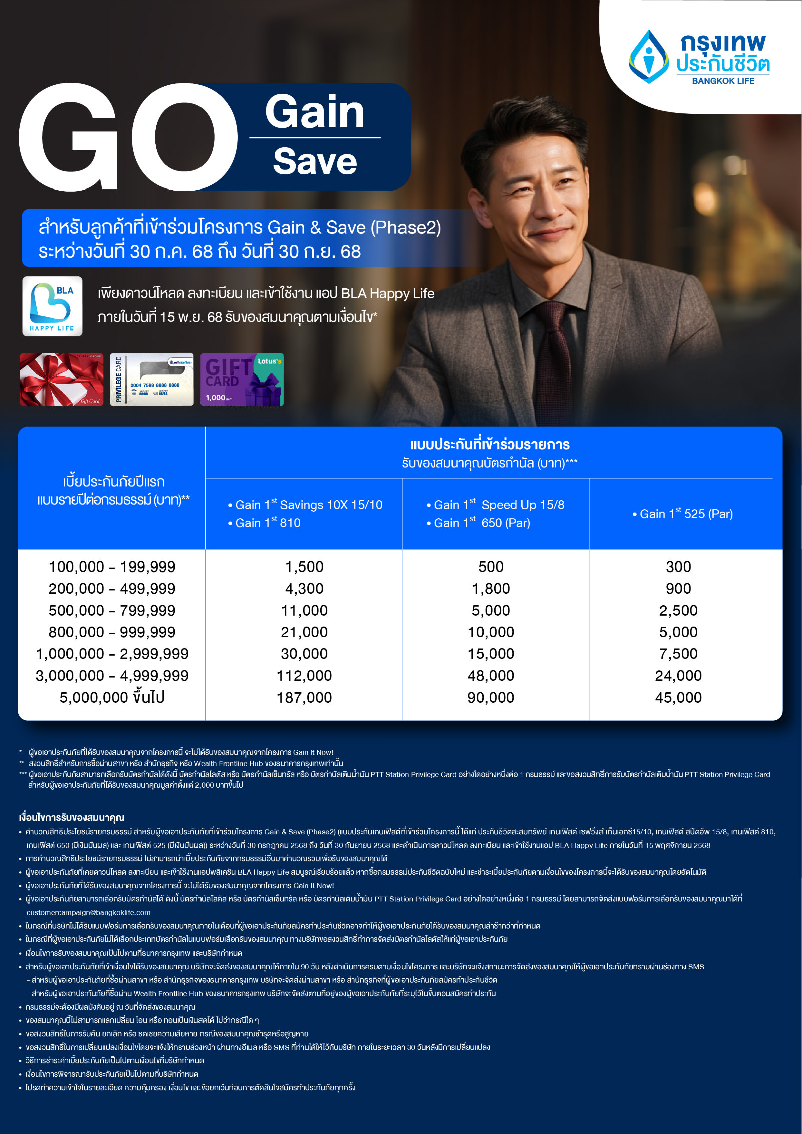 4 ลูกค้าที่มีบัญชีเงินฝากประจำบัวหลวงซุปเปอร์โบนัสตามโครงการ Gain & Save Phase 1 สามารถเข้าร่วมโครงการนี้ได้ด้วยการสมัครทำประกันชีวิตและฝากเงินเข้าบัญชีเดิม ตามเงื่อนไขของโครงการ Gain & Save Phase 2 โดยไม่ต้องเปิดบัญชีเงินฝากประจำบัวหลวงซุปเปอร์โบนัส (2)