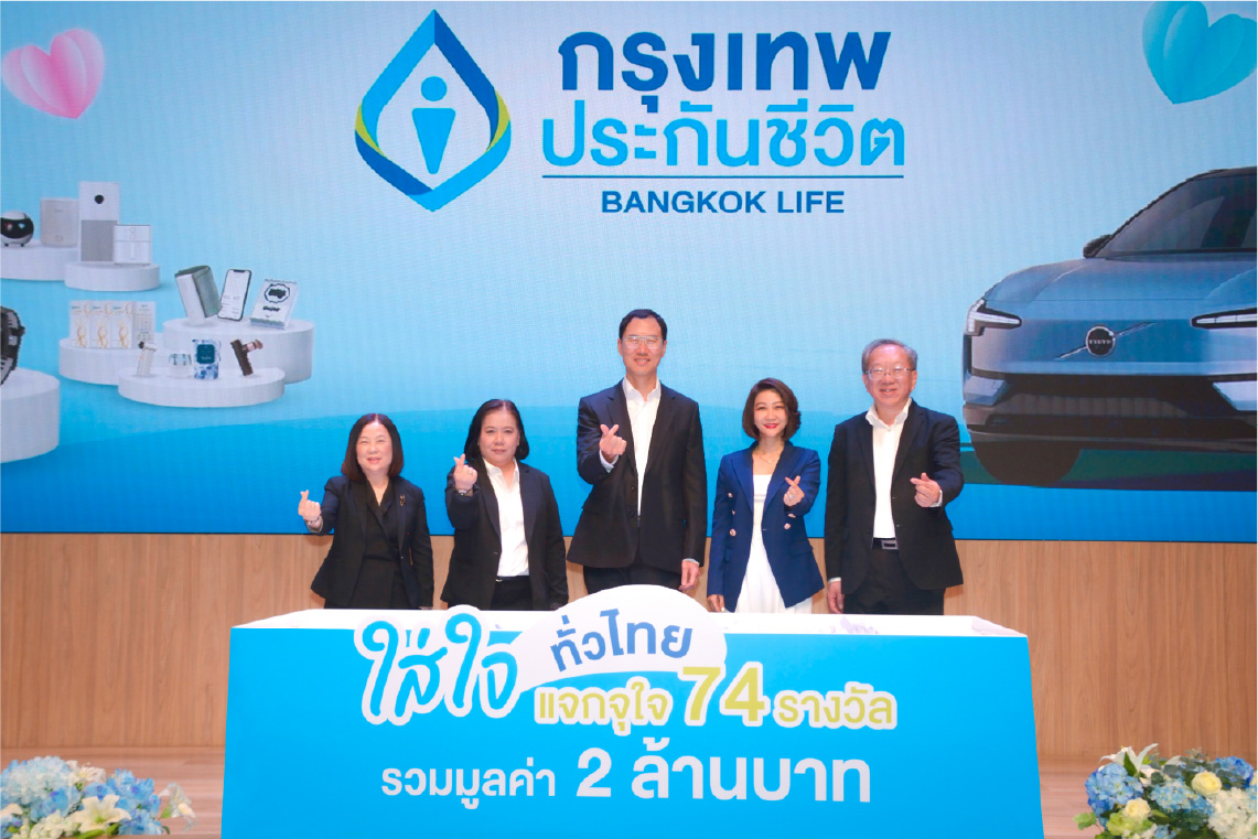 บริษัท กรุงเทพประกันชีวิต จำกัด (มหาชน) โดย นายโชน โสภณพนิช กรรมการผู้จัดการใหญ่และประธานเจ้าหน้าที่บริหาร นำทีมผู้บริหาร จับรางวัลแคมเปญใหญ่แห่งปี “ใส่ใจทั่วไทย แจกจุใจ 74 รางวัล” ฉลองครบรอบ 74 ปี โดยได้คัดสรรของรางวัลด้วยความใส่ใจต่อสิ่งแวดล้อม สุขภาพ คุณภาพชีวิตและความมั่งคั่ง มอบเป็นของขวัญให้แก่ลูกค้าที่ให้ความไว้วางใจให้กรุงเทพประกันชีวิตได้ดูแลตลอดมา ทั้งหมด 74 รางวัล รวมมูลค่า 2 ล้านบาท อาทิ รถยนต์ไฟฟ้า Volvo รุ่น EX30 Ultra โทรศัพท์มือถือ iPhone รุ่น 16 Plus ทองคำ นาฬิกาสมาร์ทวอทช์ ณ บริษัท กรุงเทพประกันชีวิต จำกัด (มหาชน)