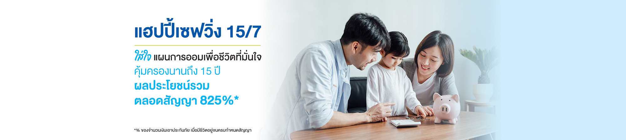 ตัวอย่าง คุณผู้ชายอายุ 35 ปี สุขภาพสมบูรณ์แข็งแรง สมัครทำประกันแฮปปี้เซฟวิ่ง 15/7 ระยะเวลาเอาประกันภัย 15 ปี ระยะเวลาชำระเบี้ยประกันภัย 7 ปี จำนวนเงินเอาประกันภัย 100,000 บาท เบี้ยประกันภัยรายปี ปีละ 99,900 บาท และมีอัตราภาษีเงินได้บุคคลธรรมดาร้อยละ 20 ตลอดอายุสัญญา