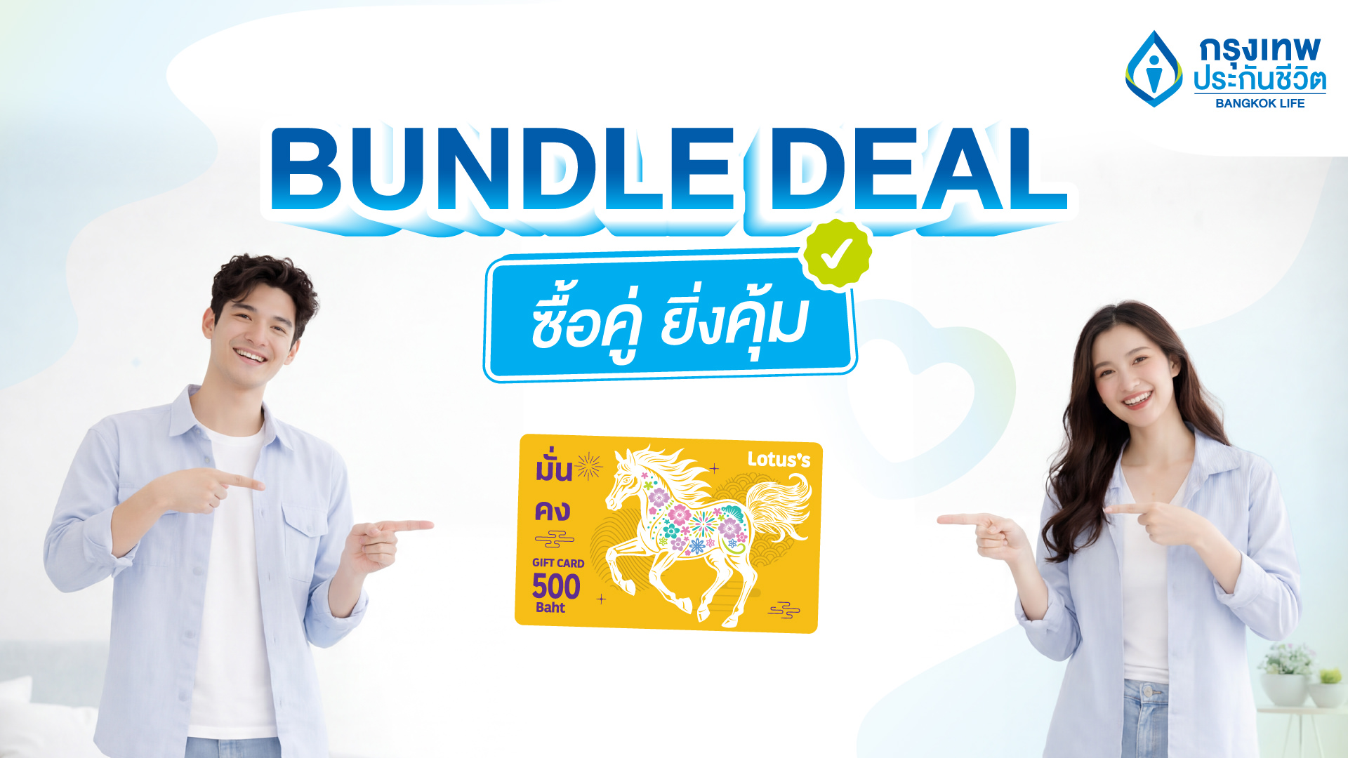 - ผู้ขอเอาประกันภัยจะต้องแจ้งความประสงค์เข้าร่วมโครงการ Bundle Deal ซื้อคู่ ยิ่งคุ้ม กับตัวแทนประกันชีวิตหรือที่ปรึกษาทางการเงินให้ดำเนินการแทนผ่านระบบ Smart App