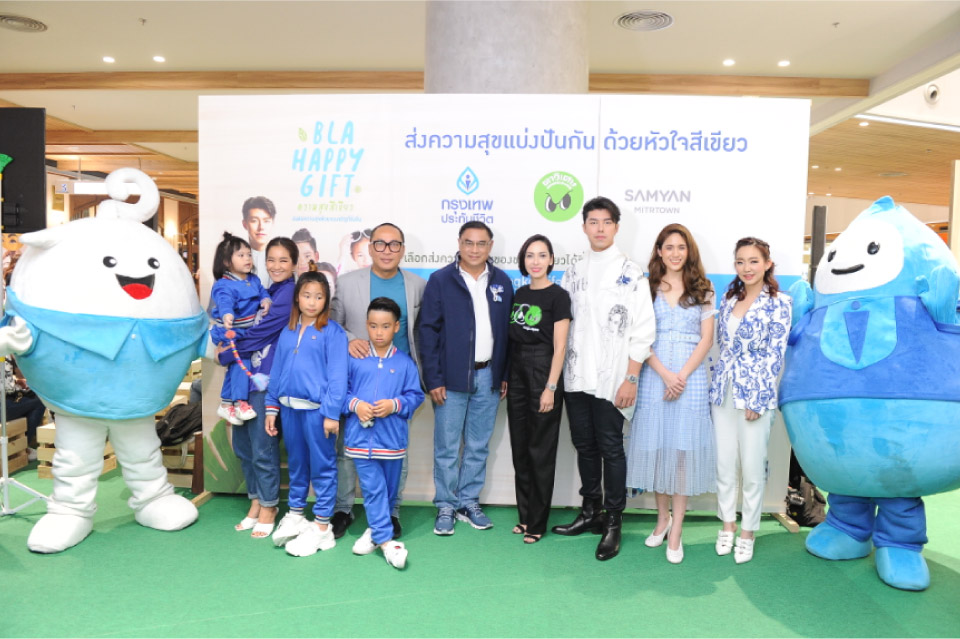 ม.ล. จิรเศรษฐ ศุขสวัสดิ์ (ที่ 5 จากขวา) กรรมการผู้จัดการใหญ่และประธานเจ้าหน้าที่บริหาร บริษัท กรุงเทพประกันชีวิต จำกัด (มหาชน) และ คุณเจนนิส ยังพิชิต (ที่ 4 จากขวา) กรรมการสมาคมสร้างสรรค์ไทย (ตาวิเศษ) แถลงข่าวเปิดโครงการ “BLA Happy Gift ส่งต่อความสุขสีเขียวด้วยของขวัญที่ยั่งยืน” กิจกรรมรณรงค์ให้คนในสังคมใส่ใจสิ่งแวดล้อม ด้วยการบริจาคสมทบทุนให้โครงการพร้อมรับของที่ระลึกรักษ์โลก ให้คุณส่งความสุขในช่วงปีใหม่ด้วยของขวัญที่ช่วยลดการก่อขยะพลาสติก โดยมี นาย ณภัทร เสียงสมบุญ (ที่ 3 จากขวา) แบรนด์แอมบาสเดอร์คนพิเศษของกรุงเทพประกันชีวิต พร้อมด้วย คุณจูน กษมา ศิลาชัย และ คุณเปิ้ล นาคร ศิลาชัย กับ 4 ออ (ซ้าย) และเหล่าดาราอีกมากมาย ที่เป็นตัวแทนครอบครัวยุคใหม่ ใส่ใจสิ่งแวดล้อม ที่มาร่วมบอกเล่าวิธีการรักษ์โลกในแบบของตัวเองภายในงาน ซึ่งรายได้ทั้งหมดจากบริจาคเข้าโครงการ BLA Happy Gift มอบให้กับสมาคมสร้างสรรค์ไทย (ตาวิเศษ) เพื่อนำไปจัดกิจกรรมรณรงค์ด้านสิ่งแวดล้อมต่อไป ณ ศูนย์การค้าสามย่านมิตรทาวน์ เมื่อเร็วๆ นี้ สนใจร่วมบริจาคได้ถึง 29 กุมภาพันธ์นี้ ที่
