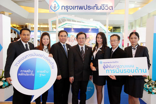 นายเรืองศักดิ์ ปัญญาบดีกุล (กลาง) ผู้ช่วยผู้จัดการใหญ่อาวุโส สายการตลาด บริษัท กรุงเทพประกันชีวิต จำกัด (มหาชน) ยกทีมที่ปรึกษาการเงินมืออาชีพ และผลิตภัณฑ์หลากหลายทั้งประกันชีวิต ประกันภัย และกองทุนรวม LTF, RMF ร่วมงาน SET in the City 2013 พร้อมให้บริการวางแผนการเงินอย่างรอบด้านเพื่อการลดหย่อนภาษี ณ รอยัลพารากอนฮอลล์ ศูนย์การค้าสยามพารากอน