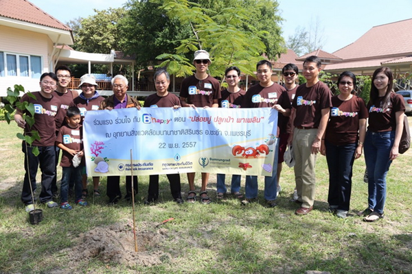 คุณโชน โสภณพนิช กรรมการผู้จัดการใหญ่ บมจ.กรุงเทพประกันชีวิต ร่วมกับคุณชัย โสภณพนิช ประธานกรรมการและประธานคณะผู้บริหาร บมจ.กรุงเทพประกันภัย และนพ.นำ ตันธุวนิตย์ ผู้อำนวยการด้านบริหารและผู้อำนวยการด้านการแพทย์ โรงพยาบาลบำรุงราษฎร์ พร้อมคณะผู้บริหารและพนักงานจิตอาสาของ 3 องค์กรกว่า 500 คน ผนึกกำลังกายและใจ ในกิจกรรม ร่วมแรง ร่วมใจ กับ Bhappy3 ตอน ปล่อยปู ปลูกป่า พาเพลิน โดยได้ร่วมกันปล่อยพ่อแม่พันธุ์ปูม้าบนหน้าหาดในเขตพระราชฐานของค่ายพระรามหก และร่วมกันปลูกป่าชายเลน ณ อุทยานสิ่งแวดล้อมนานาชาติสิรินธร ค่ายพระรามหก อ.ชะอำ จ.เพชรบุรี เมื่อวันที่ 22 พฤศจิกายน 2557