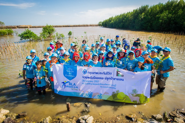 กรุงเทพประกันชีวิตพร้อมใจปลูกป่าชายเลน ร่วมอนุรักษ์พื้นที่ชุ่มน้ำบางปู เมื่อวันที่ 26 เมษายน 2557 ณ ศูนย์ศึกษาธรรมชาติกองทัพบก (บางปู) เฉลิมพระเกียรติ 72 พรรษา มหาราชินี เพื่อคงไว้ซึ่งพื้นที่แห่งความหลากหลายทางชีวภาพ เพราะการช่วยกันรักษาทรัพยากรทางธรรมชาติ ก็เปรียบเสมือนช่วยรักษาระบบนิเวศให้ยังคงอยู่ โดยการทำกิจกรรมบำเพ็ญประโยชน์ พัฒนาพื้นที่ ไม่ว่าจะเป็น การทาสีสะพานแขวน, ซ่อมแซมสะพานไม้, ทำความสะอาดชายหาด และปลูกป่าชายเลน