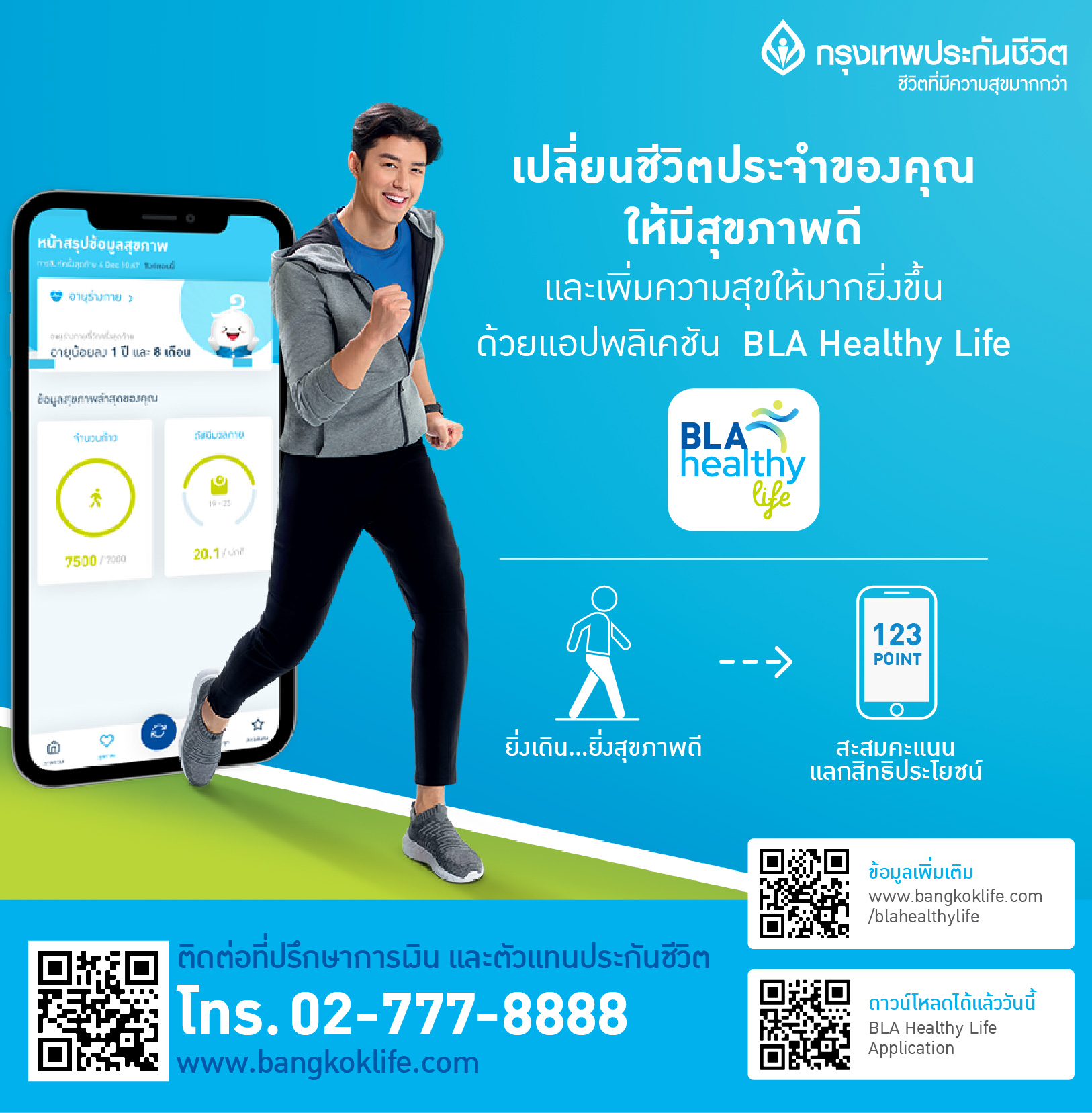 พิเศษ! สำหรับลูกค้า บีแอลเอ สมาร์ท ซีไอ ยิ่งเดิน...ยิ่งสุขภาพดี ยิ่งสนุกด้วยการบันทึกกิจกรรมการเดินและวิ่งแล้วเปลี่ยนเป็นคะแนนสะสม แลกรับสิทธิพิเศษโดนใจผ่านแอปพลิเคชัน BLA Healthy Life ดูรายละเอียดเพิ่มเติม ได้ที่ >> http://bit.ly/3b2UXI2