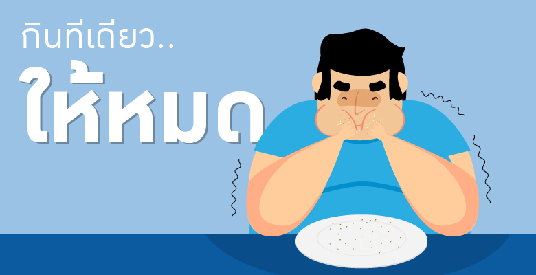 กินทีเดียวให้หมด : ไม่กินไปตักไป เพราะจะทำให้กินเรื่อยๆ แบบไม่รู้จบ ควรตักอาหารที่กินมาไว้ในจาน แล้วกินให้เสร็จทีเดียว จะช่วยให้ร่างกายย่อยอาหารได้ดีขึ้น