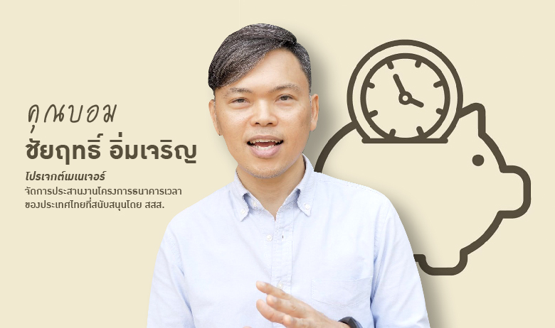 ถ้าพูดถึงธนาคาร หลายคนก็คงจะคิดไปถึงแค่เรื่องการฝาก-ถอนเงินใช่ไหมล่ะ แต่วันนี้ Happy plus จะพาทุกคนไปรู้จักกับธนาคารรูปแบบใหม่ ธนาคารที่จะทำให้เราสามารถฝากเวลาไว้ในรูปแบบของการทำความดี เพื่อเบิกมาใช้ตอนเราเข้าสู่วัยผู้สูงอายุ เชื่อว่า...หลายคนเริ่มสงสัยกันแล้วล่ะสิ...ว่าคือ “ธนาคารเวลา” อะไร? วันนี้เราจะมาทำความรู้จักธนาคารเวลา จากคุณบอม ชัยฤทธิ์ อิ่มเจริญ โปรเจกต์เมเนเจอร์ที่คอยช่วยจัดการ ประสานงานโครงการธนาคารเวลาของประเทศไทยที่สนับสนุนโดย สสส.