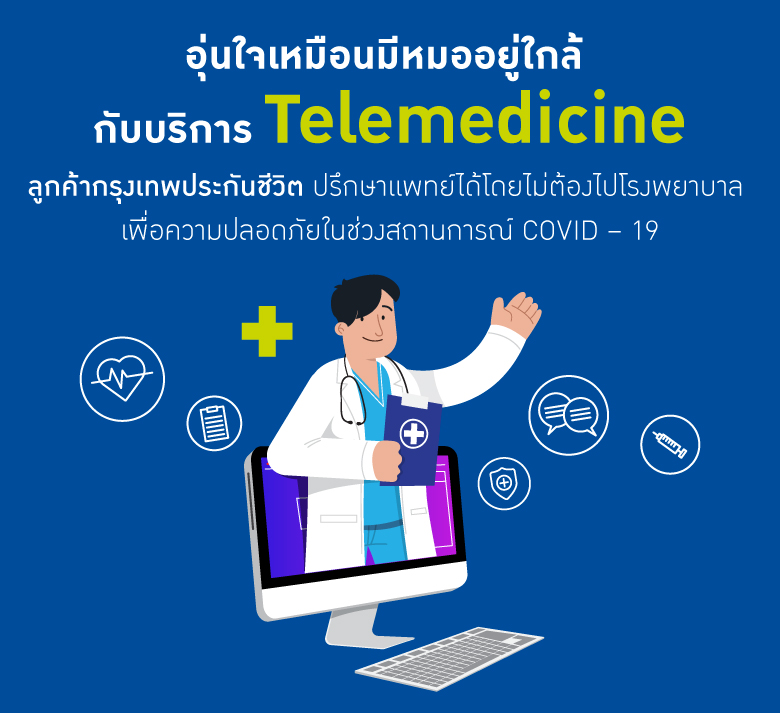 แน่นอนว่าบริการ Telemedicine ช่วยอำนวยความสะดวกในการพบแพทย์เป็นอย่างมาก ซึ่งลูกค้ากรุงเทพประกันชีวิตสามารถใช้บริการนี้ได้เลย (คลิกดูรายชื่อโรงพยาบาลพันธมิตรที่เข้าร่วมโครงการฯ)