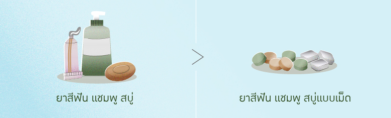 เปลี่ยนจาก “ยาสีฟัน แชมพู สบู่แบบเดิม ๆ ” เป็น “ยาสีฟัน แชมพู สบู่แบบเม็ด”