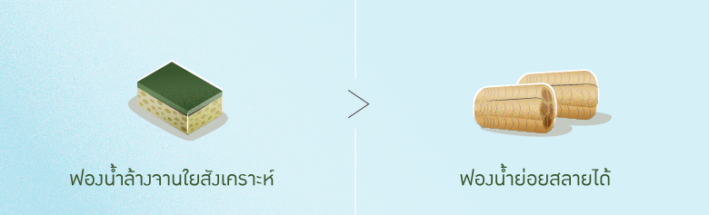มีอีกหลายทางเลือกกับผลิตภัณฑ์หลากหลายรูปแบบ อย่างฟองน้ำล้างจานเราก็มีแบบที่ย่อยสลายได้ง่ายจากธรรมชาติ ใช้แล้วก็เป็นมิตรกับสิ่งแวดล้อม