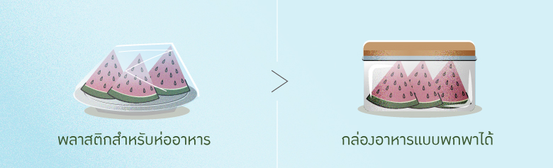 เปลี่ยนจาก “พลาสติกสำหรับห่ออาหาร” เป็น “กล่องอาหารแบบพกพาได้”