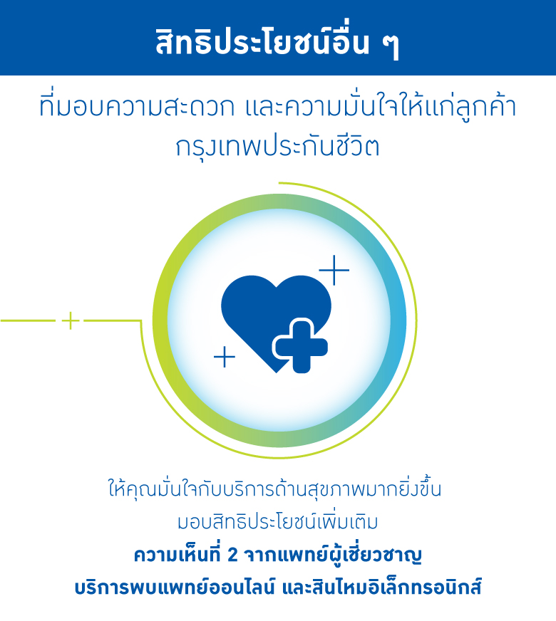 นอกจากนี้ทางกรุงเทพประกันชีวิตยังมีบริการอีกมากมายที่มอบความสะดวก และความอุ่นใจให้กับลูกค้า อาทิ บริการให้การรักษา คำแนะนำ ข้อมูลสุขภาพผ่านช่องทางโทรเวชกรรม หรือ บริการพบแพทย์ออนไลน์ (TeleConsultation) เหมาะกับผู้ที่มีประวัติการรักษาที่โรงพยาบาลบำรุงราษฎร์ ผู้ป่วยโรคเรื้อรัง และผู้ป่วยที่มีนัดตรวจเดิม ติดตามอาการหลังผ่าตัด อีกทั้งระบบสินไหมอิเล็กทรอนิกส์ (E-Claim) ที่สะดวกรวดเร็ว โดยทั้งหมดนี้คือโครงการสุดพิเศษที่เรานำมาเสนอให้กับลูกค้ากรุงเทพประกันชีวิต ยกระดับการเข้ารักษาเพื่อประโยชน์สูงสุดให้กับทุกท่าน ส่วนครั้งหน้าเราจะมีกิจกรรมเพื่อสร้างความสุขที่ไหน หรือมีบริการอะไรที่น่าสนใจ ก็ฝากติดตามกันนะครับ