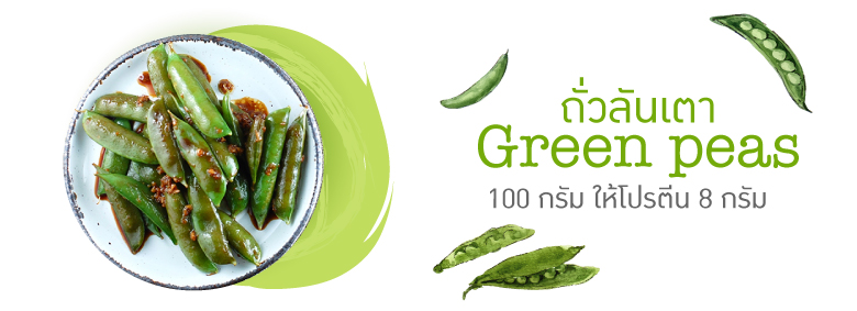 3. ผัดถั่วลันเตา (ถั่วลันเตา 100 กรัม ให้โปรตีน 8 กรัม)
