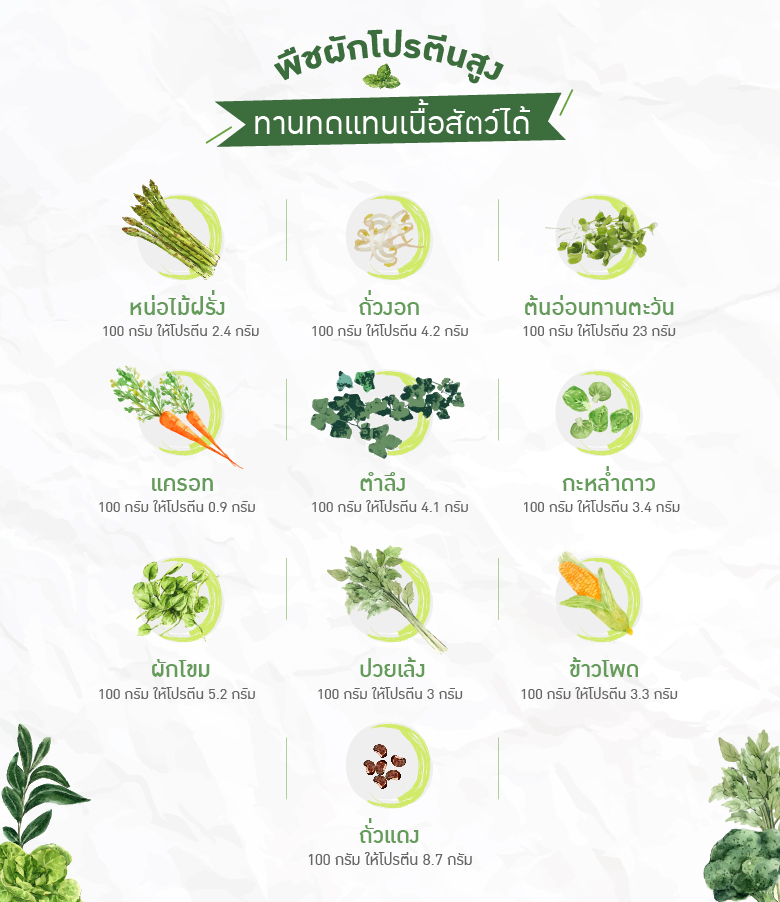 สำหรับการทานอาหารเพื่อรับโปรตีนจากพืชผักแทนการรับจากเนื้อสัตว์นั้น ถือเป็นทางเลือกสำหรับคนที่ต้องการดูแลสุขภาพ เพราะอาหารการกินคือปัจจัยหลักที่ส่งผลโดยตรงต่อสุขภาพร่างกาย วิธีที่ดีที่สุดคือเริ่มจากการปรับพฤติกรรมการกิน แบบค่อยเป็นค่อยไป โดยทำบนพื้นฐานของความพอดี เพราะจะทำให้เกิดเป็นความต่อเนื่องจนกลายเป็นการมีสุขภาพดีอย่างยั่งยืน