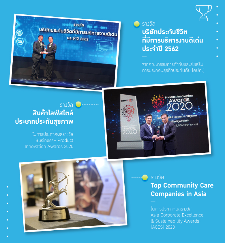 ในความมุ่งมั่นและพัฒนาอย่างต่อเนื่องของกรุงเทพประกันชีวิต ทำให้เราได้รับรางวัลต่าง ๆ มากมาย ซึ่งตอกย้ำถึงความเป็นผู้นำในการปกป้องชีวิตและสร้างความมั่นคงสู่ความมั่งคั่งให้กับทุกคน ด้วยนวัตกรรมที่ทันสมัยจากการคิดรอบด้านเพื่อตอบโจทย์สินค้าและบริการให้ถึงความต้องการของลูกค้าอย่างแท้จริง ตลอดจนบริการเสริมด้านสุขภาพ BLA Every Care ที่ดูแลทุกช่วงเวลาแบบครบวงจร เตรียมความพร้อมให้คำแนะนำก่อนเจ็บป่วย และยังดูแลอย่างต่อเนื่องเมื่อออกจากโรงพยาบาล รวมถึงสิทธิประโยชน์อื่น ๆ ที่เราได้จับมือกับโรงพยาบาลชั้นนำและสถานพยาบาลที่มีชื่อเสียงอีกหลายแห่ง เพื่อให้ลูกค้าผู้ถือกรมธรรม์ได้รับประโยชน์ที่คุ้มค่ามากที่สุด พร้อมการดูแลที่พิเศษสุดอีกด้วยเช่นกัน