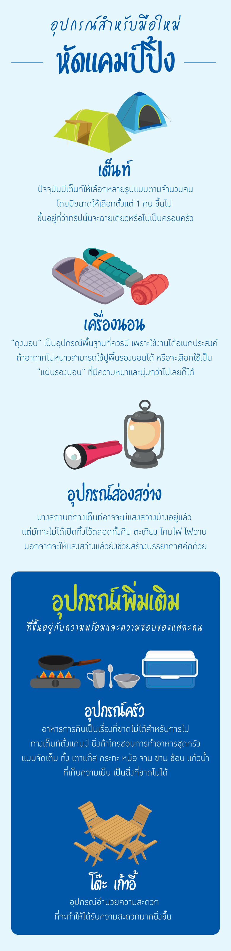 ก่อนที่จะออกเดินทางไปยังสถานที่ต่าง ๆ จะต้องมีการเตรียมตัวสักหน่อย เพื่อให้การไปกางเต็นท์ตั้งแคมป์เป็นไปอย่างราบรื่น สนุกแบบที่ตั้งใจ และได้ชาร์จไฟให้ตัวเองกลับมามีพลังจริง ๆ