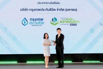 Bangkok Life Assurance received the honorary certificate for Organization that Supports Social Employment of Persons with Disabilities 2022 organized by Thai Health Promotion Foundation (ThaiHealth) together with the Ministry of Labour, the Social Innovation Foundation and associates to empower persons with disabilities in Bangkok and upcountry areas. Bangkok Life Assurance has been a strong supporter of the movement and continuously endorses the social and economic dimensions of sustainability through increasing career opportunities and empowering persons with disabilities to create equality for Thai people.