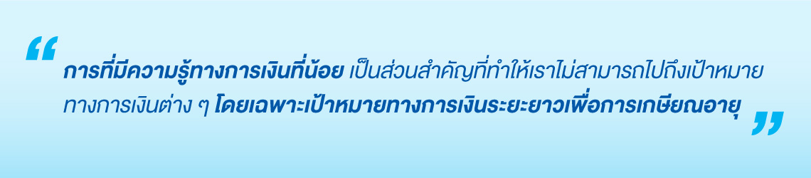 “การที่มีความรู้ทางการเงินที่น้อย เป็นส่วนสำคัญที่ทำให้เราไม่สามารถไปถึงเป้าหมายทางการเงินต่างๆ โดยเฉพาะเป้าหมายทางการเงินระยะยาวเพื่อการเกษียณอายุ”