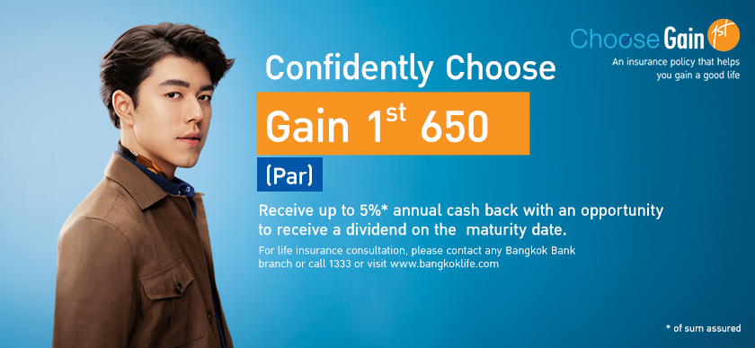 - *The company may consider paying dividends on the maturity date to the insured. Dividend amount depends on the return on investment of the par – product assets throughout the policy period deducted by the total cost of this product which the company will allocate at 80% of that surplus to the insured. The dividend at the end of the contract will be different for each product according to terms and conditions, and dividend calculation method specified by the company.