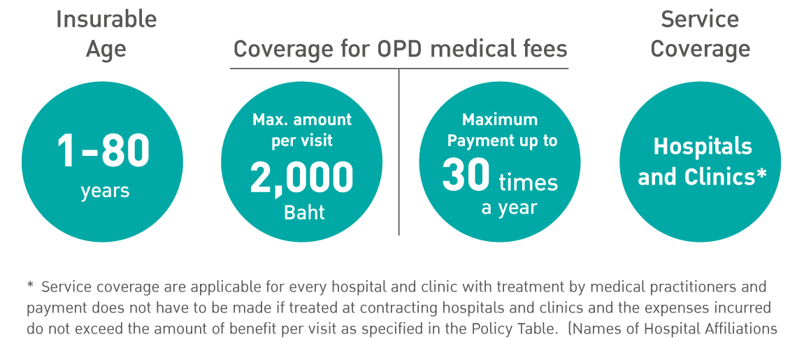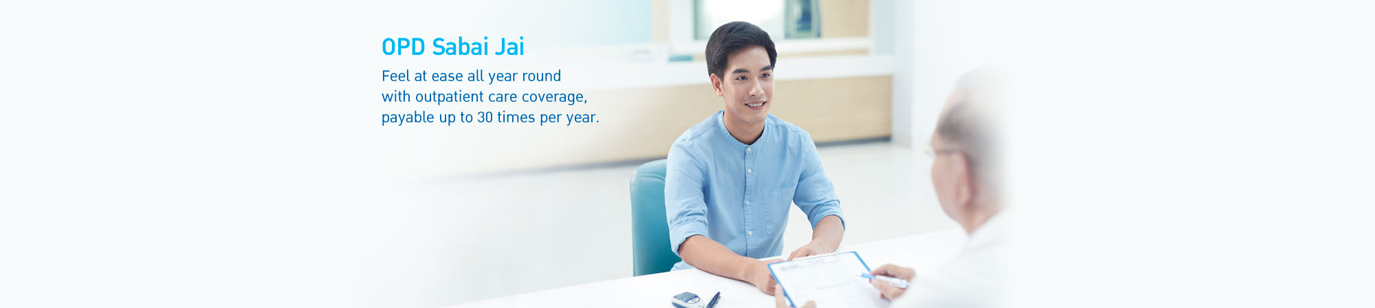 (The insured can purchase only one OPD Benefit Endorsement (Normal) (OPD Sabai Jai Endorsement) per policy. The maximum OPD coverage allowed to be purchased is determined based on total room & board benefit amount from all health riders under the same policy. However, the total OPD coverage for all policies must not exceed 2,000 baht).