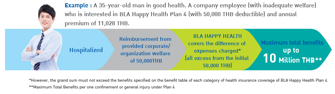| Deductible per confinement (for benefits and coverage Group 1-5) | 30,000 | 100,000 | 30,000 | 100,000 | 30,000 | 100,000 | |