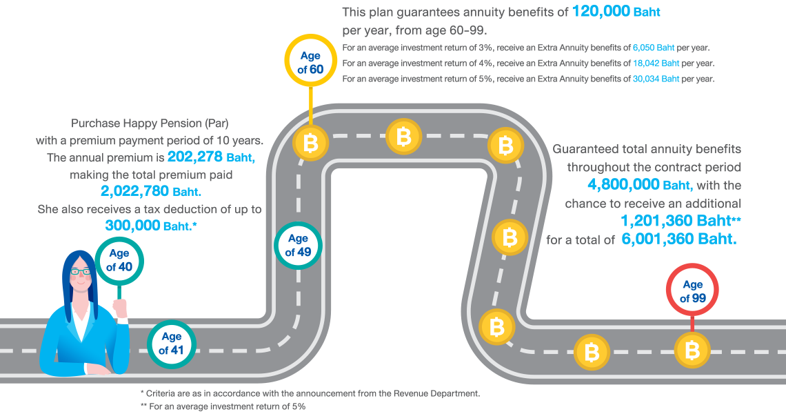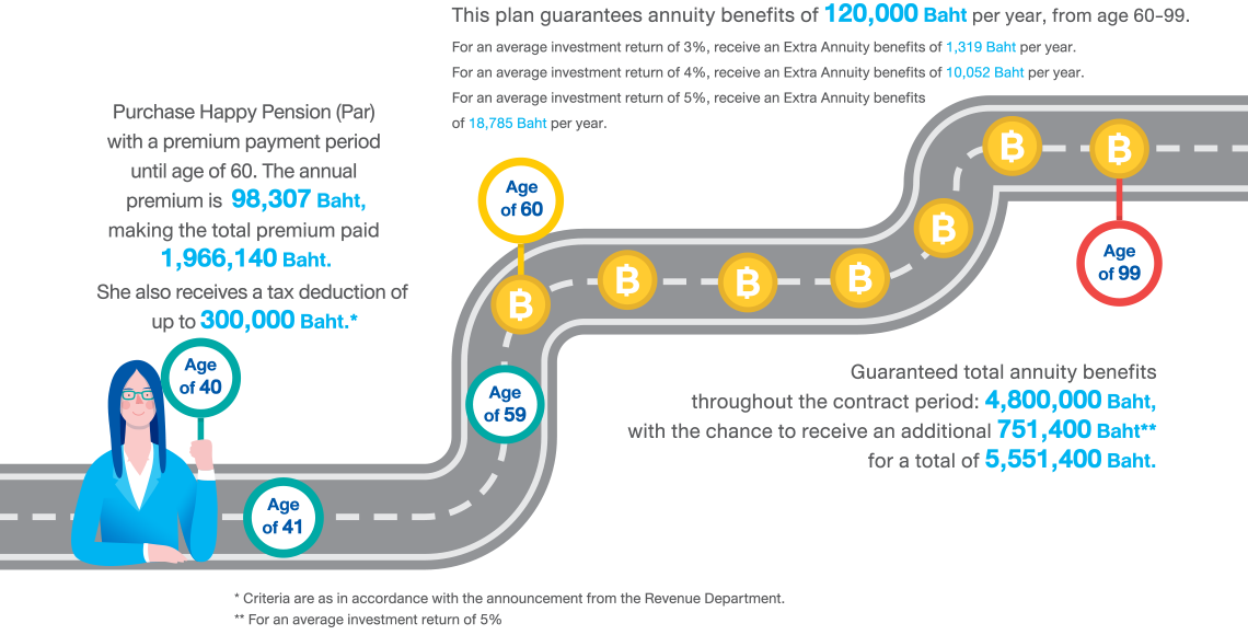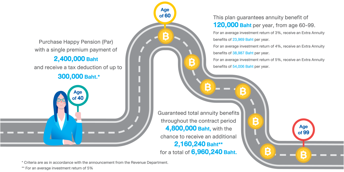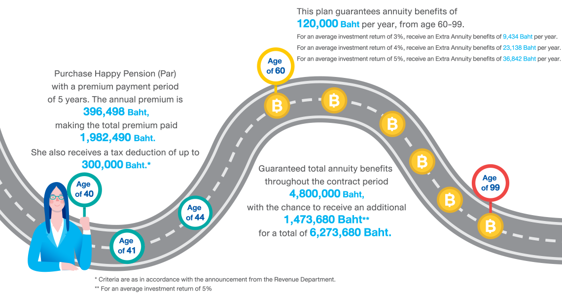 To meet the needs of planning in each aspect of life, the endowment insurance with Par is designed to improve your chances of generating higher returns with investment proportion in assets which are different from Non-Participating Product by increasing the investment proportion in high-risk assets along with managed with a dedicated investment portfolio. Expertise and efficiency for aiming in good and appropriate returns in each period.