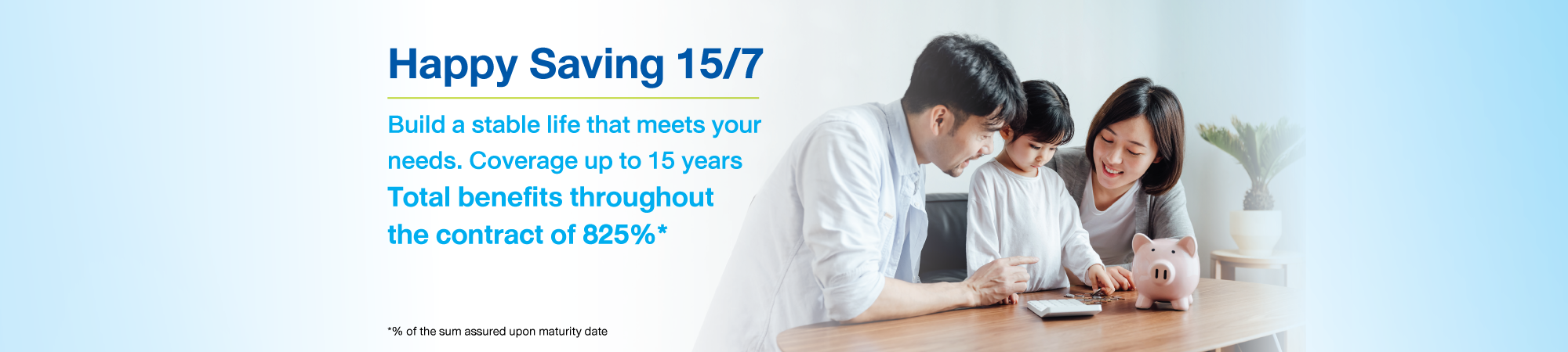 Happy Saving 15/7 premium and health premium (if any) is eligible for tax deduction in accordance with the announcement from the Revenue Department