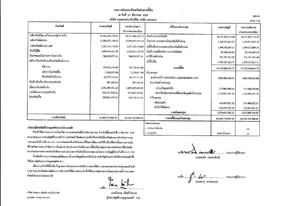 ฐานะการเงินและผลดำเนินการ ปี 2551