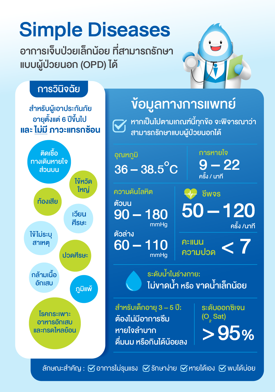 Simple Diseases คือ อาการเจ็บป่วยเล็กน้อย ที่สามารถรักษาแบบผู้ป่วยนอก (OPD) ได้