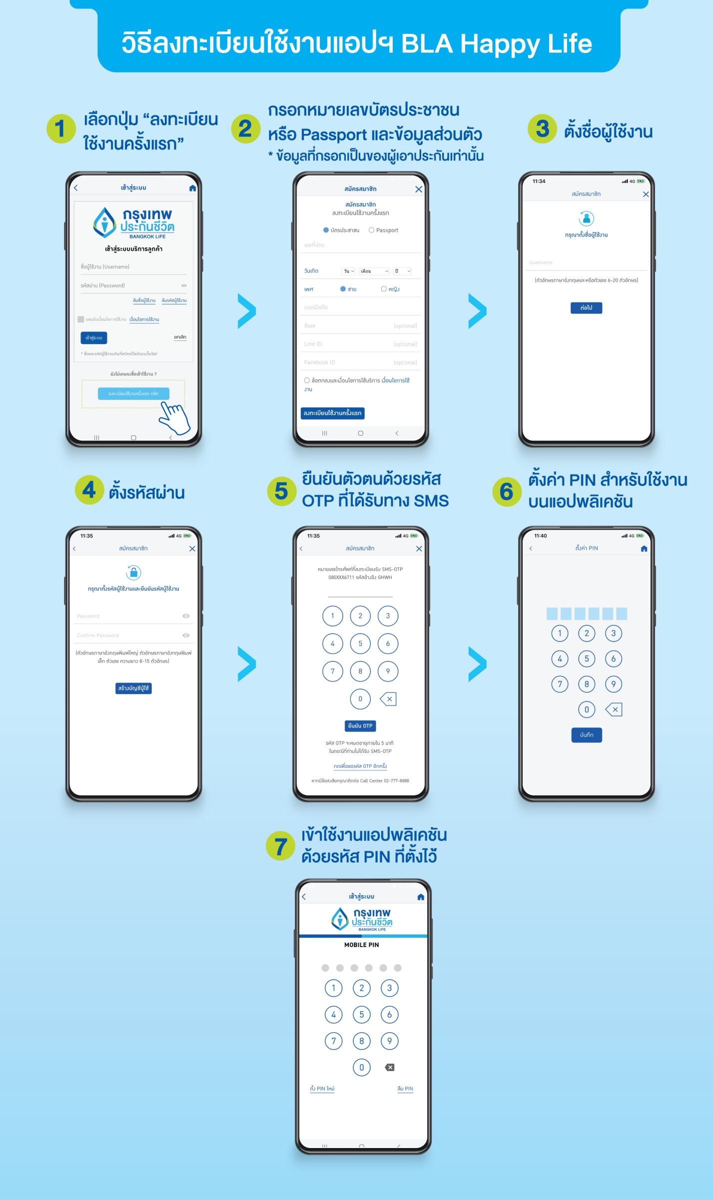 ดาวน์โหลดคู่มือการใช้งานแอป BLA Happy Life : https://www.bangkoklife.com/HappyLifeClub/assets/documents/Happy_Life_App_Manual_2022.pdf