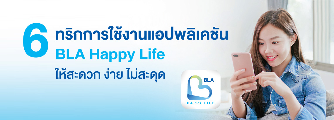 แอปพลิเคชัน BLA Happy Life ผู้ช่วยมือหนึ่งของลูกค้ากรุงเทพประกันชีวิต ไม่ต้องออกจากบ้าน ก็ใช้บริการได้สะดวกทุกที่ทุกเวลา ไม่ว่าจะชำระเบี้ย ดูข้อมูลกรมธรรม์ เปลี่ยนแปลงข้อมูล ยื่นเคลมหรือดาวน์โหลดเอกสารก็ง่าย ทำเองได้ตลอด 24 ชั่วโมง!