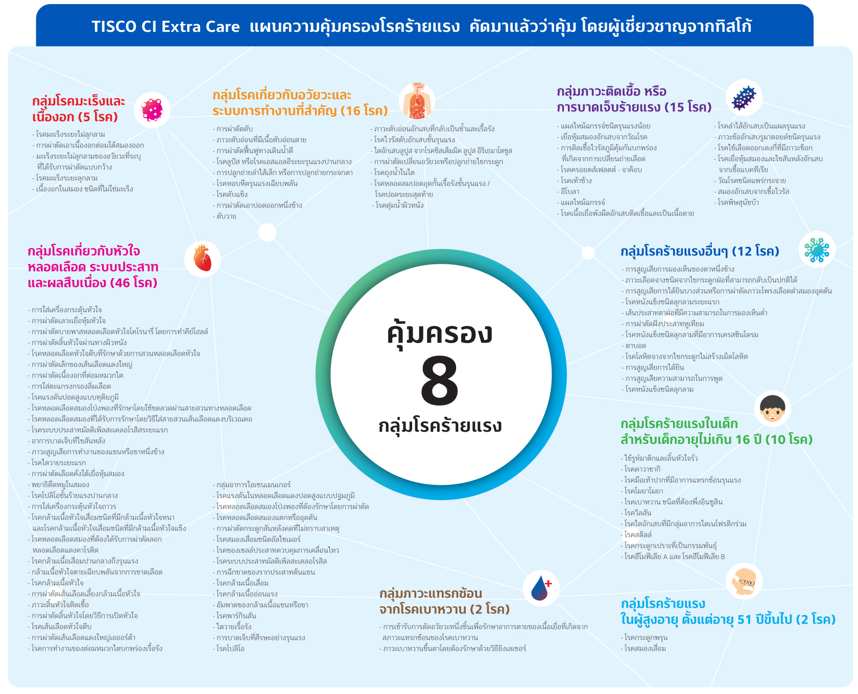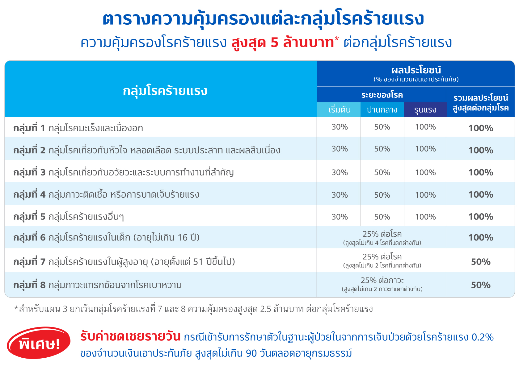 * สำหรับแผน 3 ยกเว้นกลุ่มโรคร้ายแรงที่ 7 และ 8