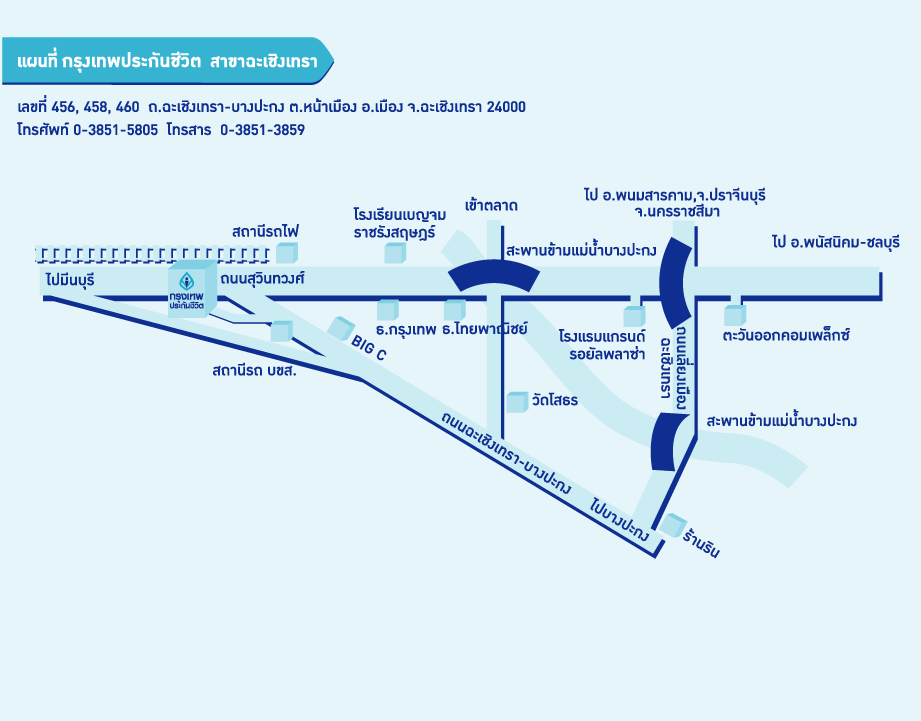 456, 458, 460 ถ.ฉะเชิงเทรา-บางปะกง ต.หน้าเมือง อ.เมือง จ.ฉะเชิงเทรา 24000