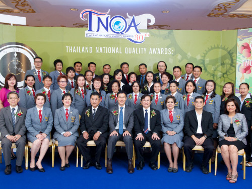 คุณโชน โสภณพนิช กรรมการผู้จัดการใหญ่ กรุงเทพประกันชีวิต ในฐานะประธานการจัดงานพิธีมอบรางวัลตัวแทน คุณภาพดีเด่นแห่งชาติ ครั้งที่30ประจำปี 2556 คุณเรืองศักดิ์ ปัญญาบดีกุล ผู้ช่วยผู้จัดการใหญ่อาวุโส สายการตลาด และคุณประสิทธิ์ บุญเจริญ ที่ปรึกษาผู้บริหารสายการตลาด ร่วมแสดงความยินดี ในโอกาสที่ฝ่ายขายของบริษัทเข้ารับ รางวัลตัวแทนคุณภาพดีเด่นแห่งชาติ ณ ห้องรอยัลจูบิลี่ อาคารชาเลนเจอร์ อิมแพ็ค เมืองทองธานี |