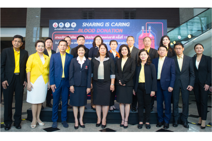 วราวรรณ เวชชสัสถ์ (แถวหน้าที่ 6 จากขวา) รองเลขาธิการคณะกรรมการกํากับและส่งเสริมการประกอบธุรกิจประกันภัย (คปภ.) นุสรา (อัสสกุล) บัญญัติปิยพจน์ (แถวแรกที่ 5 จากขวา) นายกสมาคมประกันชีวิตไทย พร้อมด้วย อรนุช สำราญฤทธิ์ (แถวหลังที่ 1 จากขวา)ผู้อำนวยการอาวุโส สายประกันชีวิต บริษัท กรุงเทพประกันชีวิต จำกัด (มหาชน) และผู้บริหารจากหลากหลายบริษัทสมาชิก นำทีมพนักงานจิตอาสารวมพลังทำดีบริจาคโลหิตเพื่อลดภาวการณ์ขาดแคลนโลหิตและสำรองโลหิตให้แก่สภากาชาดไทย เนื่องในโอกาสวันประกันชีวิตแห่งชาติประจำปี 2561 จัดโดยสมาคมประกันชีวิตไทย ณ ศูนย์บริจาคโลหิตแห่งชาติ สภากาชาดไทยในวันที่ 4 กรกฎาคม 2561 นับเป็นหนึ่งในกิจกรรมดีๆ เพื่อสังคมและคุณภาพชีวิตที่ดีของประชาชนที่กรุงเทพประกันชีวิตได้ร่วมรณรงค์และสนับสนุนเสมอมา”