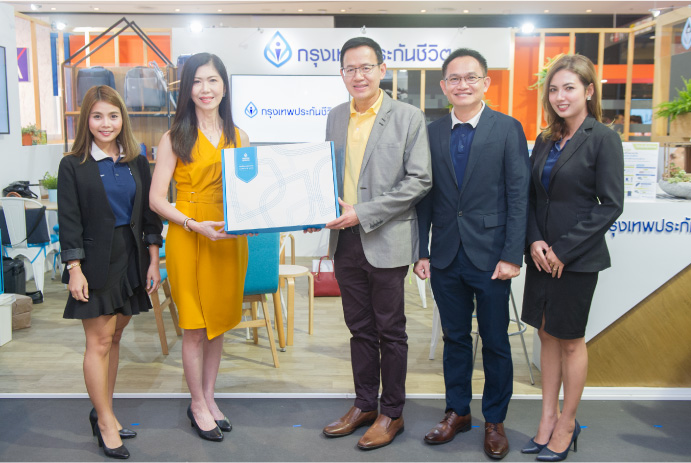 บริษัท กรุงเทพประกันชีวิต จำกัด (มหาชน) ยกขบวนที่ปรึกษาการเงินและตัวแทนประกันชีวิต เผยสูตรเติมความสุข วางแผนตอบโจทย์ทุกเป้าหมาย ภายในงานวันประกันชีวิตแห่งชาติ ครั้งที่ 19 ร่วมเปิดมุมมองใหม่เกี่ยวกับการวางแผนทางการเงินทั้งการสร้างความมั่นคงและมั่งคั่ง ทั้งแผนประกันชีวิต กองทุน และวินาศภัย เพื่ออนาคตของคนในยุคปัจจุบัน พร้อมพบกับโปรโมชั่นสุดพิเศษมากมาย งานนี้ได้รับเกียรติจาก ดร.สุทธิพล ทวีชัยการ (กลาง) เลขาธิการ คปภ. เยี่ยมชมบูธ โดยมี อรนุช สำราญฤทธิ์ (ที่ 2 จากซ้าย) ผู้อำนวยการอาวุโส สายประกันชีวิต และชัยณรงค์ รัตนเพชร (ที่ 2 จากขวา) ผู้บริหารส่วนแนะนำผลิตภัณฑ์ทางการเงิน บริษัท กรุงเทพประกันชีวิต จำกัด (มหาชน) พร้อมทีมที่ปรึกษาการเงิน บมจ.กรุงเทพประกันชีวิต ให้การต้อนรับ ณ บริเวณชั้น 1 ศูนย์การค้าเซ็นทรัลพลาซา เวสต์เกต เมื่อเร็วๆ นี้”