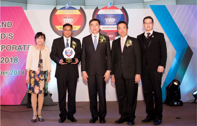 ด้วยความุ่งมั่นและพัฒนาไม่หยุดยั้ง ทำให้บริษัท กรุงเทพประกันชีวิต จำกัด (มหาชน) หรือ BLA นำโดย ม.ล. จิรเศรษฐ ศุขสวัสดิ์ (ที่ 2 จากซ้าย) กรรมการผู้จัดการใหญ่และประธานเจ้าหน้าที่บริหาร เข้ารับรางวัล “Thailand’s Top Corporate Brand Value” ต่อเนื่องอีกครั้งเป็นปีที่ 4 ตั้งแต่ปี 2558-2561 โดยในปีนี้กรุงเทพประกันชีวิตเป็นองค์กรที่มีมูลค่าแบรนด์องค์กรสูงสุด 46,327 ล้านบาทในหมวดธุรกิจประกันภัยและประกันชีวิต ซึ่งแสดงถึงศักยภาพ ความมั่นคงขององค์กร และความเชื่อมั่นที่ประชาชนมีต่อกรุงเทพประกันชีวิต ในการเป็นที่ปรึกษาการเงินและการให้บริการที่ดีอย่างต่อเนื่องในทุกๆ ด้าน การนี้ยังได้รับเกียรติจาก ศ.ดร.บัณฑิต เอื้ออาภรณ์ (ที่ 3 จากซ้าย) อธิการบดีจุฬาลงกรณ์มหาวิทยาลัยเป็นผู้มอบรางวัล ในงาน ASEAN and Thailand’s Top Corporate Brands 2018 ณ หอประชุมศุกรีย์ แก้วเจริญ ตลาดหลักทรัพย์แห่งประเทศไทย เมื่อเร็วๆ นี้