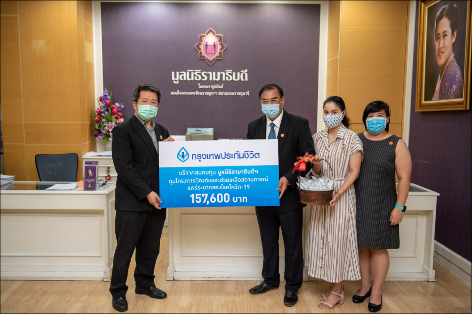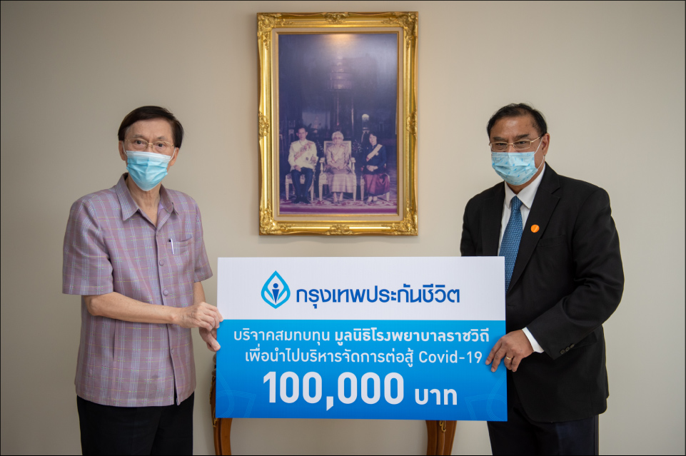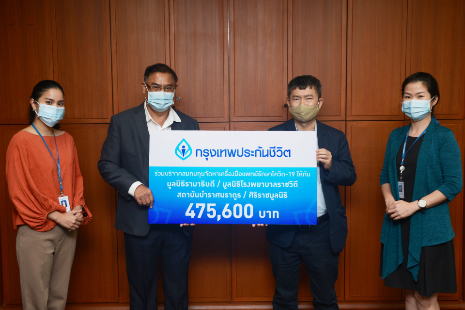 บริษัท กรุงเทพประกันชีวิต จำกัด (มหาชน) ร่วมกับผู้บริหารและพนักงาน ตัวแทนประกันชีวิตและที่ปรึกษาการเงินของบริษัท ร่วมสมทบทุนบริจาคเงินสู้ ‘โควิด-19’ เพื่อจัดซื้อเครื่องช่วยหายใจ ให้แก่โรงพยาบาล 4 แห่ง ได้แก่ ศิริราชมูลนิธิ มูลนิธิโรงพยาบาลราชวิถี สถาบันบำราศนราดูร และมูลนิธิรามาธิบดี เพื่อสนับสนุนความพร้อมและอุปกรณ์ที่จำเป็นในการปฏิบัติหน้าที่ของบุคลากรทางการแพทย์ พร้อมมอบเจลแอลกอฮอล์ล้างมือ 1,000 หลอด เพื่อเตรียมรับมือกับการรักษาผู้ป่วย จากการแพร่ระบาดของโรคติดเชื้อไวรัสโคโรน่า 2019 (COVID-19) ที่มีแนวโน้มเพิ่มขึ้นทุกวัน