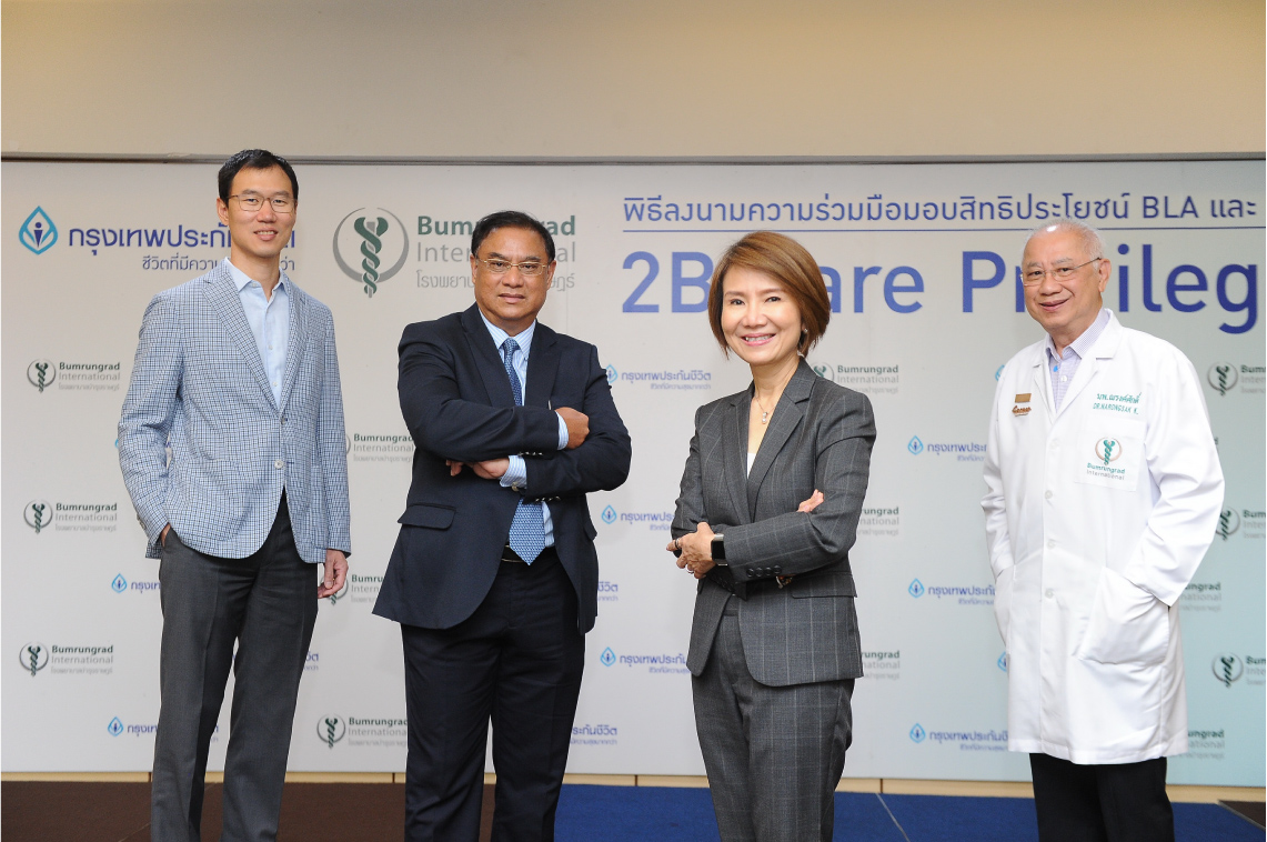 ม.ล.จิรเศรษฐ ศุขสวัสดิ์ กรรมการผู้จัดการใหญ่และประธานเจ้าหน้าที่บริหาร บริษัท กรุงเทพประกันชีวิต จำกัด (มหาชน) กล่าวว่า “กรุงเทพประกันชีวิตให้ความสำคัญในการพัฒนาคุณภาพการบริการเพื่อให้การทำงานทำได้อย่างมีประสิทธิภาพ การมอบสิทธิประโยชน์ที่เข้าถึงความต้องการของผู้เอาประกันภัย รวมถึงการเพิ่มคุณภาพบริการด้านสุขภาพแก่กลุ่มลูกค้าของเรา กรุงเทพประกันชีวิตยังได้ส่งเสริมการสร้างความคุ้มครองด้านสุขภาพและโรคร้ายแรงที่มีแนวโน้มสูงขึ้นและมีความจำเป็นกับประชาชนมากขึ้นในทุกๆ วัน ทั้งจากความจำเป็นในการรักษาด้านสุขภาพและการที่ประชาชนจะมีอายุยืนยาวขึ้น ความคุ้มครองด้านสุขภาพและโรคร้ายแรงจะช่วยบรรเทาภาระค่าใช้จ่ายที่เกิดขึ้นในการดูแลรักษายามเจ็บป่วย ทั้งนี้บริษัทมีการพัฒนาความร่วมมือกับโรงพยาบาลชั้นนำเพื่อมอบบริการด้านสุขภาพต่างๆ ให้กับผู้เอาประกันภัย โดยในครั้งนี้เราได้ผสานความร่วมมือกับโรงพยาบาลบำรุงราษฎร์ ซึ่งเป็นโรงพยาบาลชั้นนำของประเทศที่มีความพร้อมในการให้บริบาลทางการแพทย์ที่ครบครันและทันสมัย ภายใต้ชื่อโครงการ “2B Care Privilege” เพื่อมอบประโยชน์สูงสุดแก่ลูกค้าของทั้งทางโรงพยาบาลบำรุงราษฎร์และผู้เอาประกันภัยของกรุงเทพประกันชีวิต”