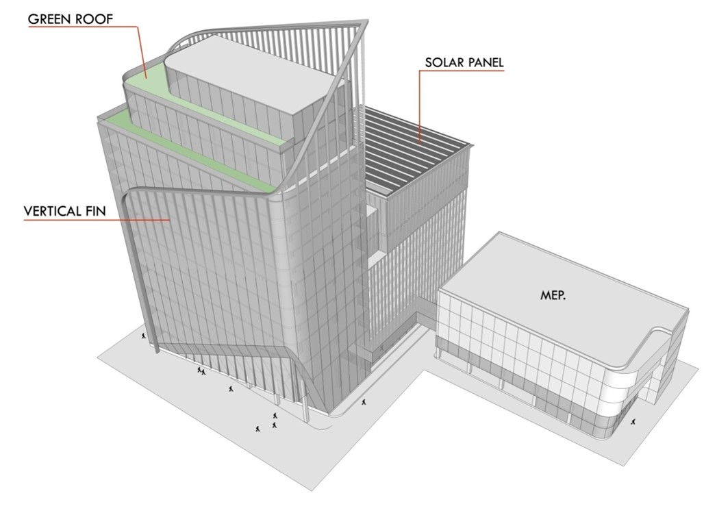 จากแนวคิดดังกล่าวนำมาสู่การออกแบบอาคารสำนักงานใหญ่แห่งใหม่ของกรุงเทพประกันชีวิต ซึ่งได้ผสานความใส่ใจและคุณค่าการดูแลสิ่งแวดล้อมเข้าไว้ด้วยกัน ผ่านการจัดวางทิศทางของอาคารเพื่อหลบความร้อนจากแสงอาทิตย์ ออกแบบครีบอาคารเป็นแนวตั้งคลุมอาคารฝั่งทิศตะวันออกเฉียงใต้ และทิศตะวันตกเฉียงใต้ จึงช่วยลดการใช้พลังงาน ควบคู่กับการนำความสวยงามอันเป็นเอกลักษณ์จากตราสัญลักษณ์องค์กรมาร่วมสื่อความหมายถึงความสุข ความเชื่อมั่นศรัทธา จนได้รับรางวัล 1 ใน 10 อาคารออกแบบดีเด่นจาก BCI ASIA AWARDS 2020