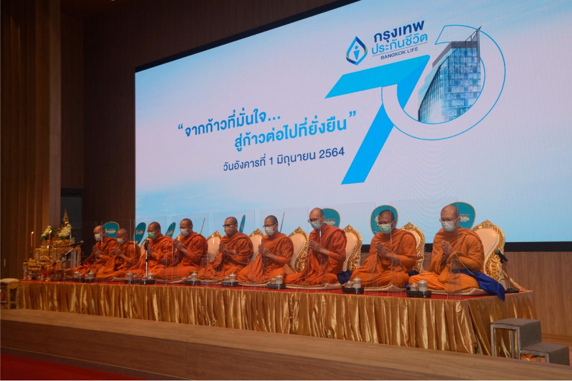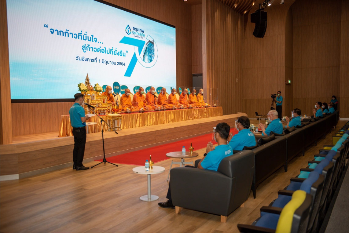 ก้าวสู่ 7 ทศวรรษที่ยิ่งใหญ่ของ บริษัท กรุงเทพประกันชีวิต จำกัด (มหาชน) หรือ Bangkok Life ได้จัดพิธีทำบุญเนื่องในโอกาสครบรอบ 70 ปี แห่งการก่อตั้ง “กรุงเทพประกันชีวิต จากก้าวที่มั่นใจ สู่ก้าวต่อไปที่มั่นคง” โดยมี ดร.ศิริ การเจริญดี (ที่ 4 จากขวา) ประธานกรรมการ บริษัท กรุงเทพประกันชีวิต จำกัด (มหาชน) นายสุนทร อรุณานนท์ชัย (ที่ 4 จากซ้าย) กรรมการบริษัท พร้อมด้วย นายโชน โสภณพนิช (ที่ 3 จากขวา) รองประธานกรรมการบริหาร บริษัท กรุงเทพประกันชีวิต จำกัด (มหาชน) ม.ล.จิรเศรษฐ ศุขสวัสดิ์ (ที่ 3 จากซ้าย) กรรมการผู้จัดการใหญ่และประธานเจ้าหน้าที่บริหาร บริษัท กรุงเทพประกันชีวิต จำกัด (มหาชน) และคณะผู้บริหาร เพื่อความเป็นสิริมงคลและเจริญรุ่งเรือง ในการเดินหน้ามุ่งพัฒนาผลิตภัณฑ์ประกันชีวิตและสร้างความรู้สึกดี ๆ ผ่านการพัฒนาบริการที่ครอบคลุมทุกด้านสำหรับลูกค้าทุกคน ณ อาคารสำนักงานใหญ่แห่งใหม่ กรุงเทพประกันชีวิต วงศ์สว่าง กรุงเทพฯ เมื่อเร็ว ๆ นี้
