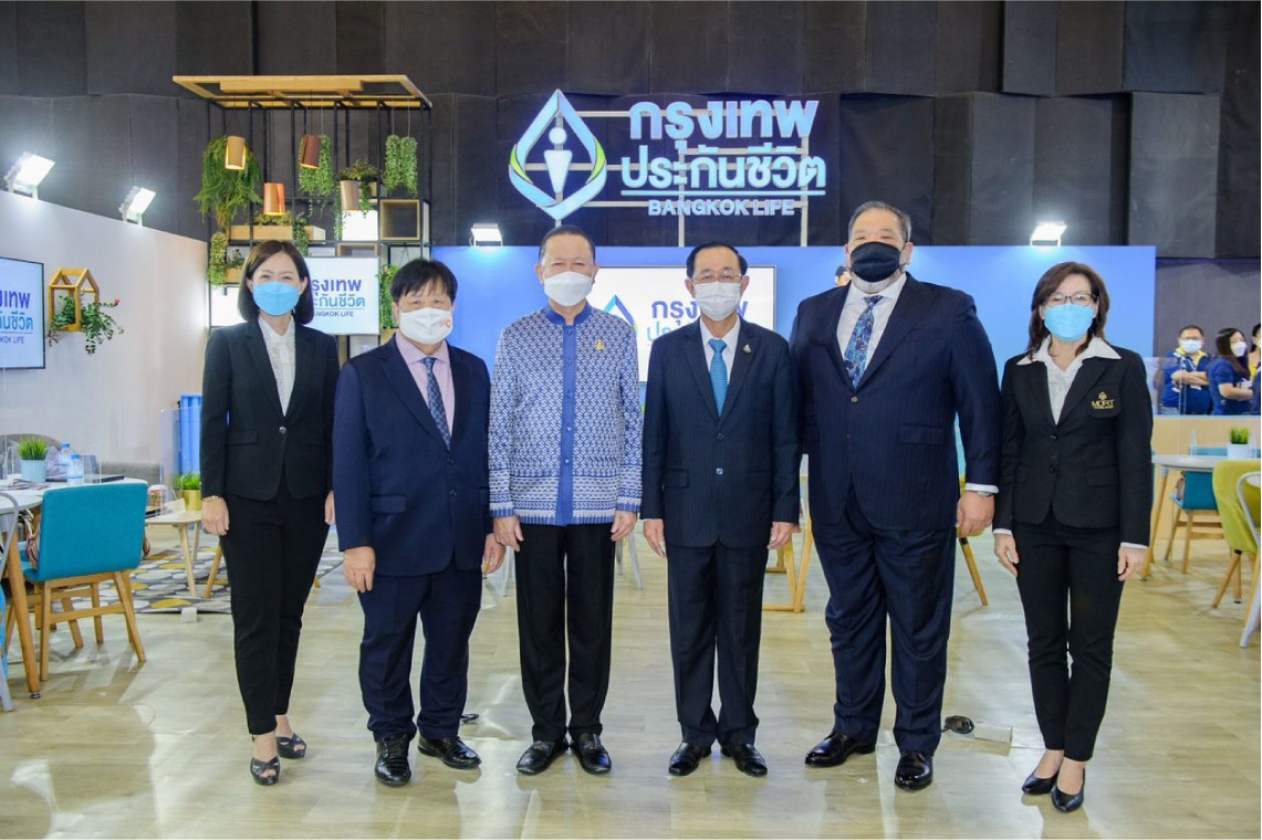 นายอนุชา ภิงคารวัฒน์ (ที่ 2 จากขวา) ผู้ช่วยผู้จัดการใหญ่สายงานตัวแทนประกันชีวิตและที่ปรึกษาทางการเงิน บริษัท กรุงเทพประกันชีวิต จำกัด (มหาชน) นำทีมที่ปรึกษาการเงินร่วมออกบูทให้บริการคำแนะนำ วางแผนทางการเงินตอบโจทย์เป้าหมายที่ต้องการ ทั้งความคุ้มครองและลดหย่อนภาษี พร้อมโปรโมชั่นสุดพิเศษในงาน Thailand Smart Money เทศกาลการเงินการลงทุน 2021 ภายใต้แนวคิด “Financial Immunity ภูมิคุ้มกันทางการเงิน” โดยมี นายอาคม เติมพิทยาไพสิฐ (ที่ 3 จากขวา) รัฐมนตรีว่าการกระทรวงการคลัง พร้อมด้วย นายรัฐกร อัสดรธีรยุทธ์ (ที่ 2 จากซ้าย) ประธานจัดงาน Thailand Smart Money ให้เกียรติเยี่ยมชมและเปิดบูธกรุงเทพประกันชีวิต ในเทศกาลการเงินการลงทุน กรุงเทพฯ ครั้งที่ 12 ณ CentralwOrld LIVE ชั้น 8 ศูนย์การค้าเซ็นทรัลเวิลด์ เมื่อเร็ว ๆ นี้