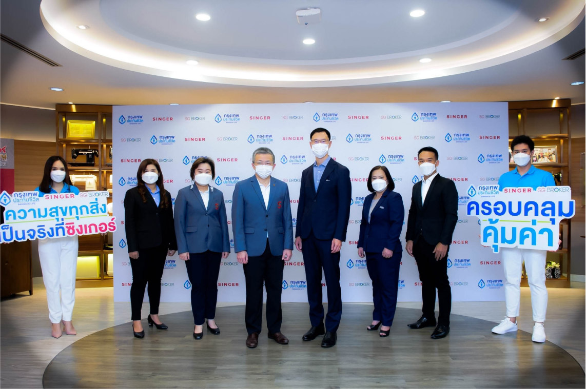บริษัท กรุงเทพประกันชีวิต จำกัด (มหาชน) ผนึกกำลังความร่วมมือ กับ บริษัท เอสจี โบรคเกอร์ จำกัด (SG Broker) บริษัทในเครือ บริษัท ซิงเกอร์ประเทศไทย จำกัด (มหาชน) เอาใจกลุ่มลูกค้ารุ่นใหม่ด้วย 2 แบบประกันเพื่อการเริ่มต้นชีวิตที่มั่นใจ กรุงเทพ 185 แบบประกันสะสมทรัพย์ที่ออมง่าย รับเงินคืนทุกปี เบี้ยเริ่มต้นเพียงเดือนละ 1,000 บาท และแบบประกันคุ้มครองวงเงินสินเชื่อ สำหรับลูกค้าสินเชื่อรถทำเงินซึ่งคุ้มครองชีวิตและอุบัติเหตุ พร้อมเงินชดเชยค่างวดกรณีทุพพลภาพชั่วคราวสิ้นเชิง มอบความอุ่นใจให้ก้าวไปข้างหน้าอย่างมั่นคง