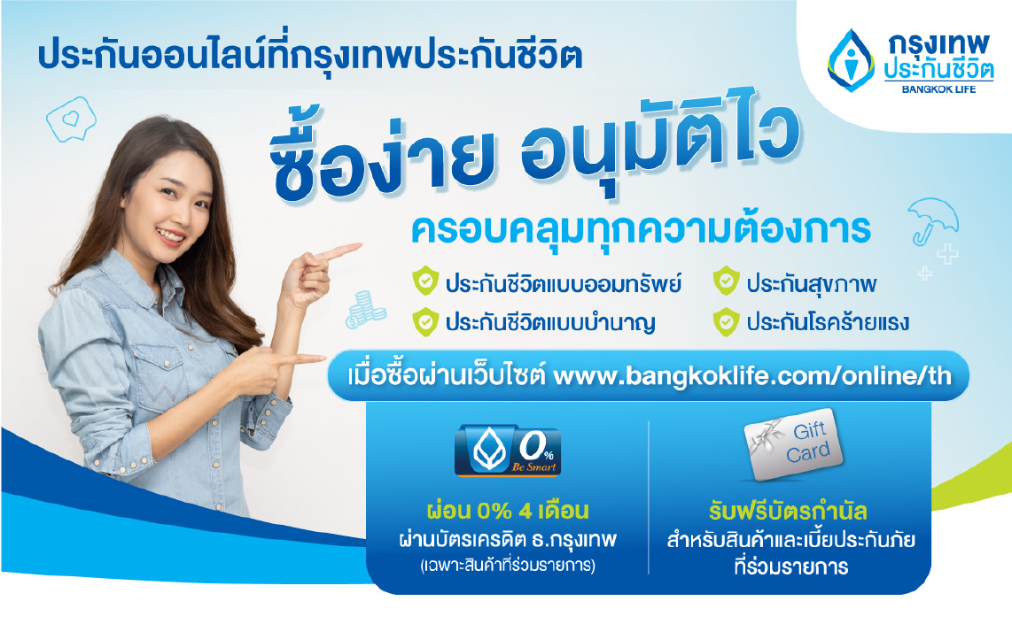 ‘กรุงเทพประกันชีวิต’ จัดโปรสองเด้ง เอาใจลูกค้าประกันออนไลน์ ซื้อง่าย อนุมัติไว ครอบคลุมทุกความต้องการ ผ่าน www.bangkoklife.com/online