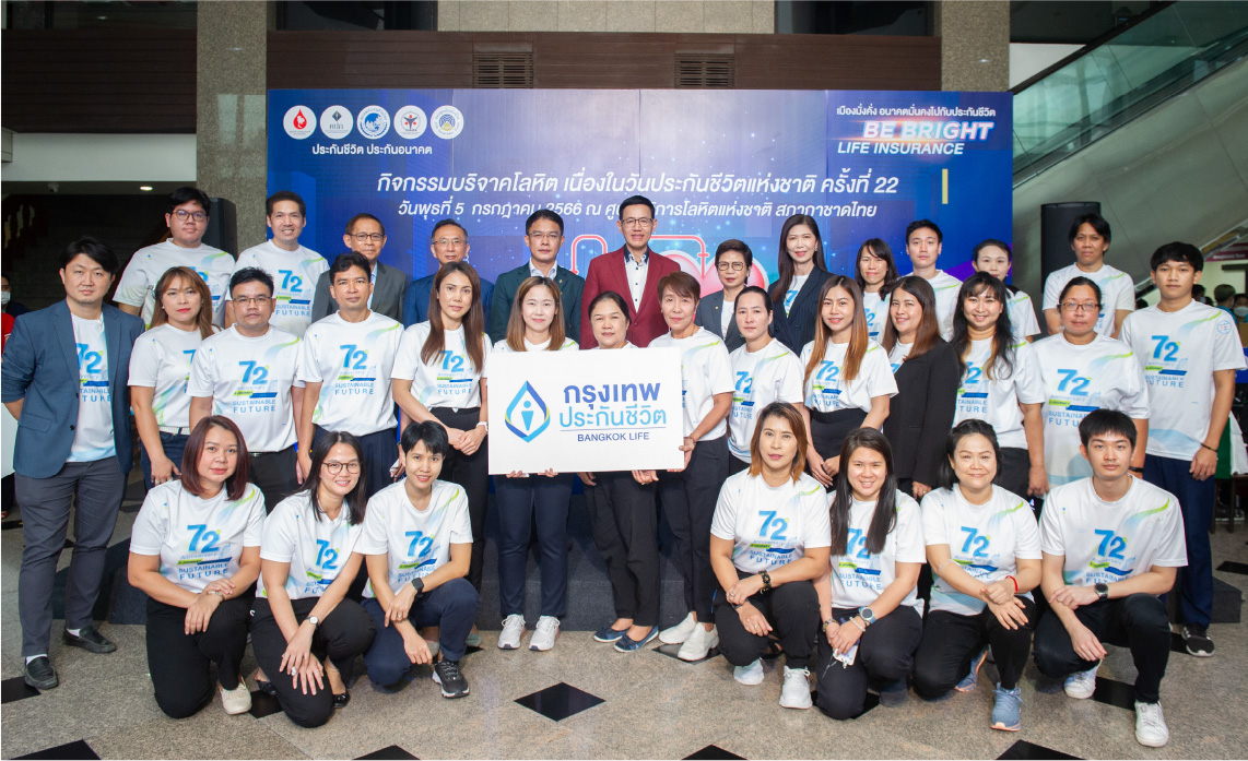 บริษัท กรุงเทพประกันชีวิต จำกัด (มหาชน) นำโดย นางอรนุช สำราญฤทธิ์ ผู้ช่วยผู้จัดการใหญ่ สายประกันชีวิต พร้อมด้วยผู้บริหารและพนักงานกรุงเทพประกันชีวิต รวมพลังร่วมบริจาคโลหิตเพื่อช่วยเหลือผู้ป่วยทั่วประเทศ เนื่องในโอกาสวันประกันชีวิตแห่งชาติประจำปี 2566 ณ ศูนย์บริการโลหิตแห่งชาติ สภากาชาดไทย ถนนอังรีดูนังต์ เมื่อเร็ว ๆ นี้