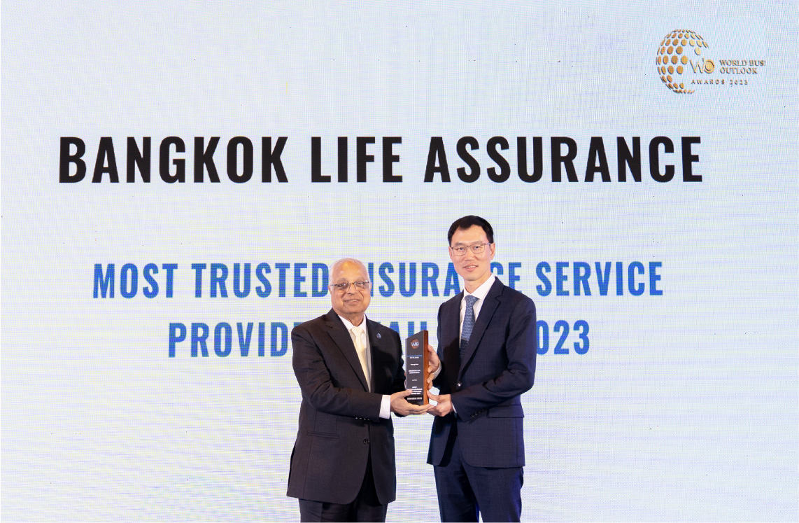กรุงเทพประกันชีวิต รับรางวัลแห่งความภูมิใจ Most Trusted Insurance Service Provider Thailand 2023 จาก World Business Outlook นิตยสารธุรกิจและการเงินจากสิงคโปร์ ตอกย้ำความสำเร็จตามเป้าหมายในการเป็นบริษัทประกันชีวิตชั้นนำที่ให้ความใส่ใจกับลูกค้าและสังคม พร้อมพัฒนาเทคโนโลยีเพื่อมอบการบริการที่ดีที่สุด ครอบคลุมทั้งความคุ้มครองชีวิตและสุขภาพ เพื่อสร้างความประทับใจและไว้วางใจในบริการ