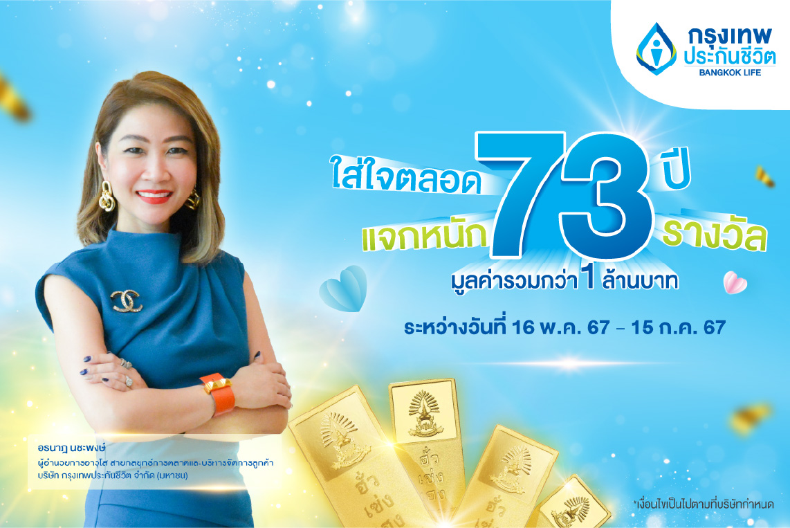 กรุงเทพประกันชีวิต จัดแคมแปญ “ใส่ใจตลอด 73 ปี แจกหนัก 73 รางวัล” ลุ้นรับรางวัลใหญ่ทองคำแท่งหนัก 5 บาท